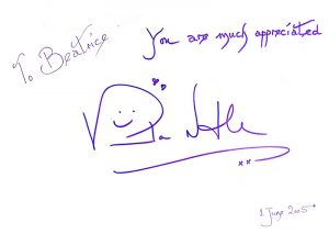 Vanda的簽名如同她的人,充滿俏皮、愛。
