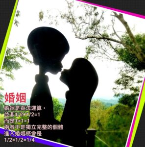 Lotus話心靈 失落人生,代代相傳人,本身就是一個完整的個體,即便進入婚姻自己的快樂與否也是自己負責,伴侶扛不起另一半的失落。 為了逃避原生家庭的痛楚,選擇進入自己「幻想」中的愛情、婚姻,幻想著我的1/2+你的1/2就能等於1,等於一個完整、健全的生活。 生活是現實的,一個1/2的人把理想、幻想建築在另一個1/2的人身上,戀愛時相互取暖,甜蜜溫馨,進入婚姻後,兩人都渴求從對方身上吸取能量來圓滿自己,無奈兩人都只有1/2相乘後變成1/4。 原本自己還有1/2的能量,進入婚姻,相互依賴,伸手請對方救贖,反將兩個人的能量消耗殆盡,重複原生家庭的悲劇,代代相傳。 自己的生命自己負責,自己的哀愁自己承擔、療癒,只有自己扛起自己的責任,有能力愛自己了,才有多餘的愛去灌溉別人,從1×1=1邁向1×1.5的境界。 再見,依賴 再見幸福 Category: Lotus話心靈Post navigationPreviousPrevious post:愛持續轉動NextNext post:高手過招,打掉重練延伸閱讀心智圖,心の抒發2025/05/26「太棒了」轉換振動頻率2023/10/30你才是自己的「負」能量2022/06/10心靈 語言 and 迷失2022/05/16擁抱2022/03/25印痕是真,時間是假2022/03/25